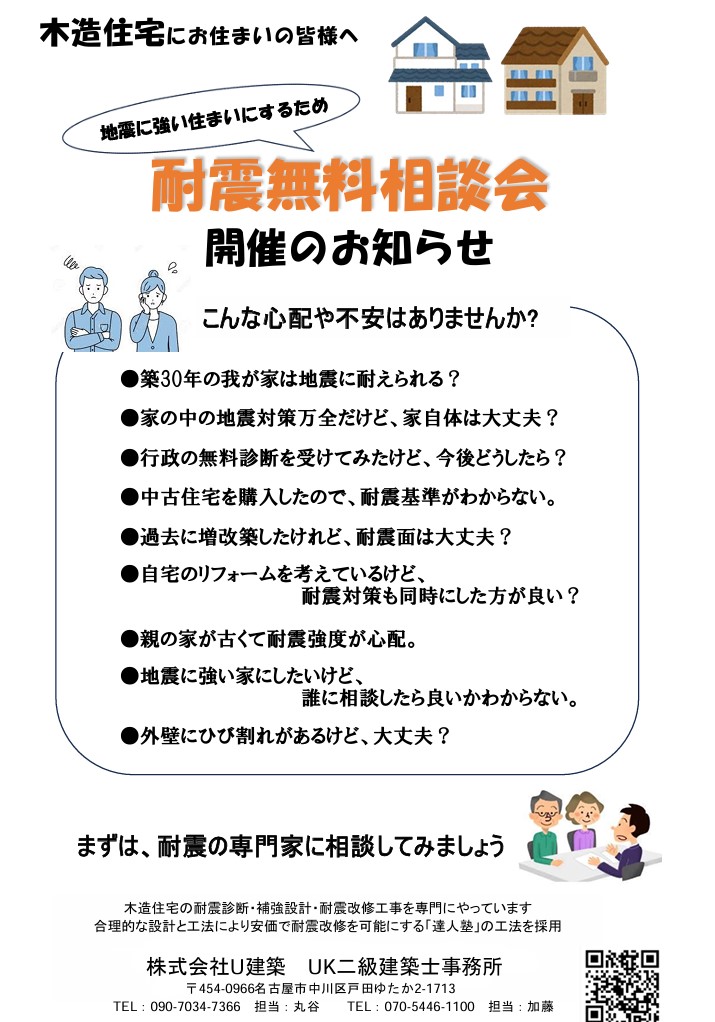 ※耐震診断書をお持ちな方は、当社での耐震工事見積提案までは無料にて相談に応じます